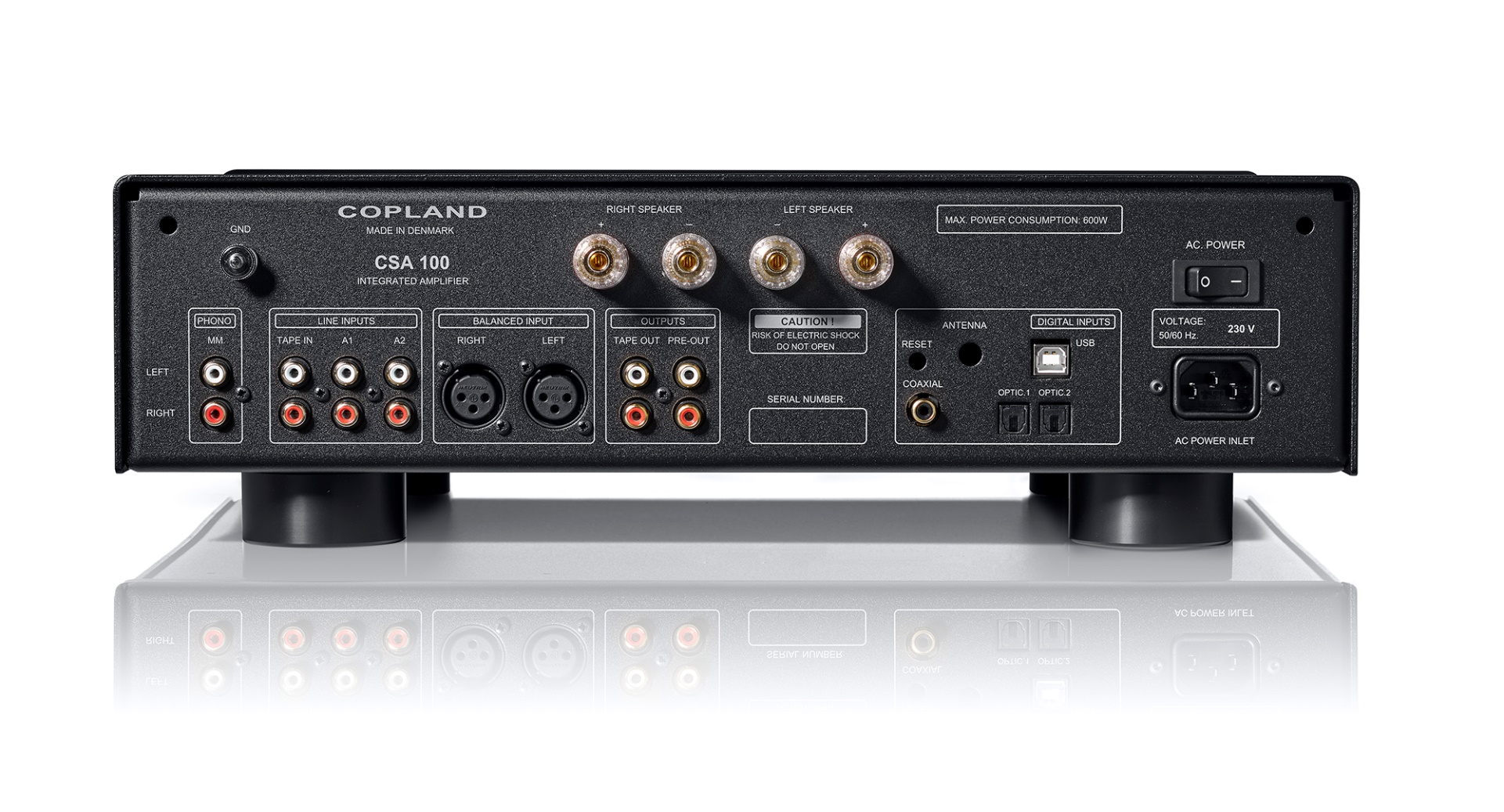 Интегральный усилитель CSA100 является новой моделью Copland, сочетающей в себе преимущества лампового и транзисторного усиления, и опирающейся на технические решения, которые уже принесли широкую известность гибридным усилителям Copland.