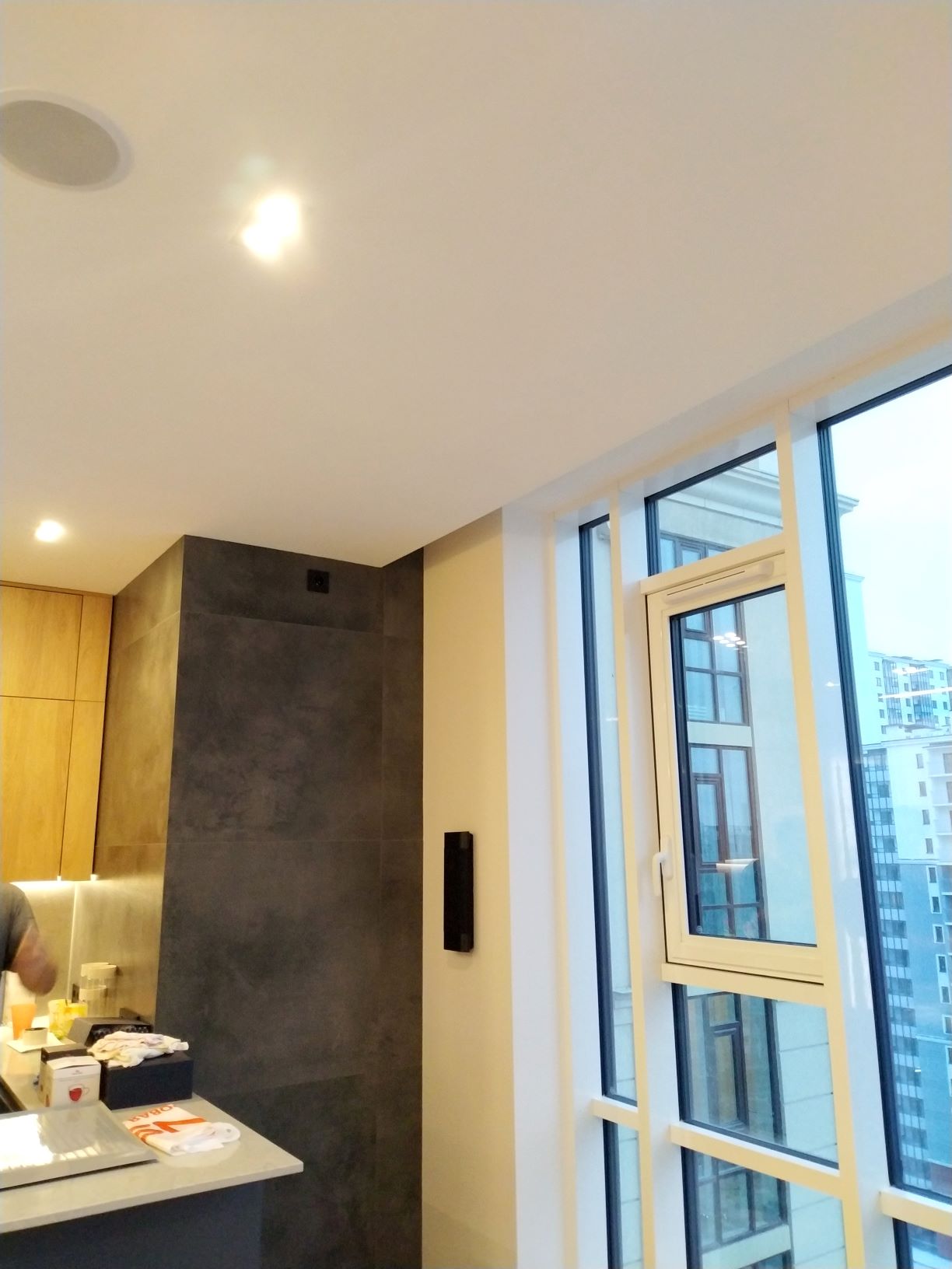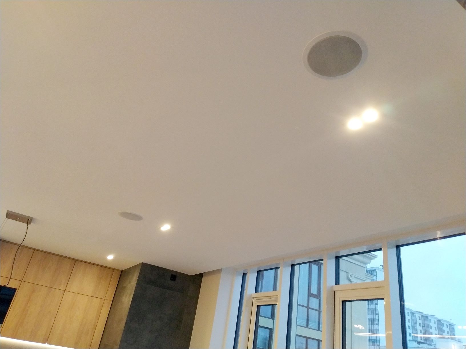 По желанию нашего заказчика домашний кинотеатр в его кухне-гостиной должен полностью соответствовать последним веяниям, присущим подобным системам. А именно, воспроизводить звуковые дорожки фильмов в форматах объёмного звука, таких как Dolby atmos и DTS X и музыку напрямую из интернета и с мобильных устройств членов семьи и друзей хозяина.Так как большое внимание уделялось прослушиванию рок-музыки и особенно американскому блюзу, мы предложили использовать акустику фирмы Klipsch из линейки Reference Premiere, как одному из лучших инструментов для воспроизведения данного материала. Поскольку пространство, выделенное под домашний кинотеатр оказалось не очень большим, было принято решение остановиться на конфигурации акустических систем 5.1.2, то есть пять колонок в горизонтальной плоскости, один сабвуфер и две колонки в потолке. Таким образом достигались все задачи поставленные нам заказчиком.